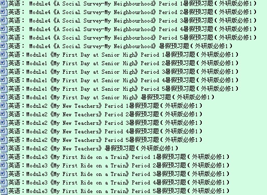 打包下载:英语:Module1-Module6 暑假预习题汇总(38套)(外研版必修1)