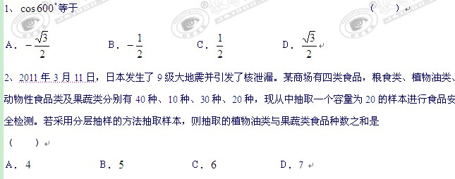 安徽省亳州市10-11学年高一下学期期末考试(数学)