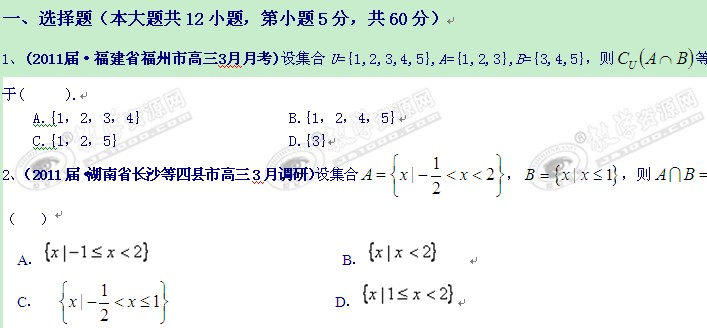2012版数学一轮精品复习学案:第一章集合与常用逻辑用语(单元总结与测试)