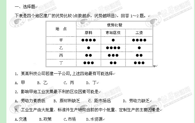 地理:3.2《工业生产与地理环境》同步测试试题(鲁教版必修二)