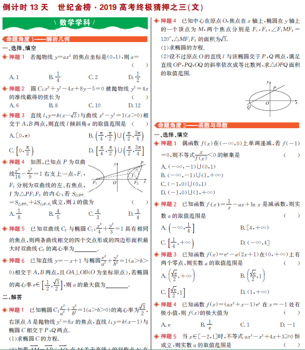 2019高考金榜猜押——世纪金榜【文科数学】(第3期)