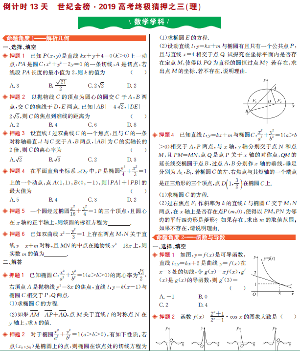2019高考金榜猜押——世纪金榜【理科数学】(第3期)