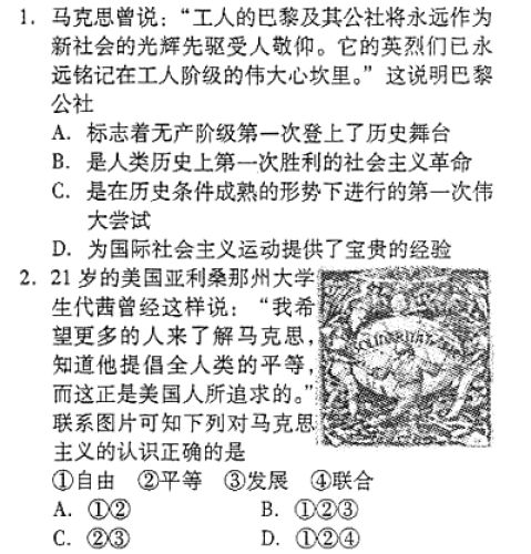 山东省潍坊市2012高考一轮历史复习第五单元检测题(PDF版)