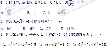 河北唐山市海港高级中学11-12学年高二上学期期中考试考(数学理)