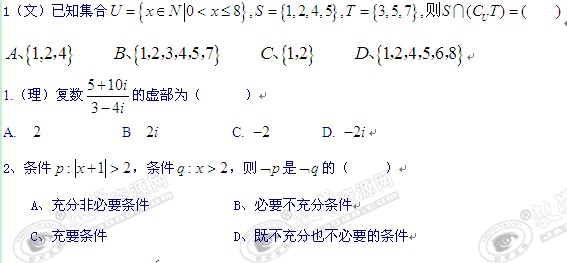 贵州省毕节市杨家湾中学2012届高三上学期第三次月考试题(数学)