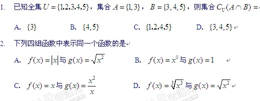 黑龙江哈三中11―12学年高一上学期期中考试(数学)