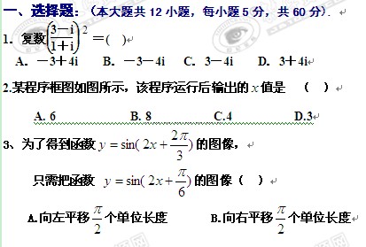河北省冀州中学2012届高三上学期期中考试(数学理B)
