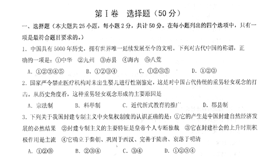 贵州省金沙县2012届高三上学期阶段检测试题(历史)扫描版