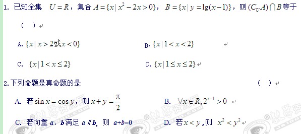 山西省晋中市四校2012届高三上学期联考(数学理)