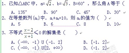 海南省琼海市嘉积中学11-12学年高二上学期教学质量监测试题(数学理)