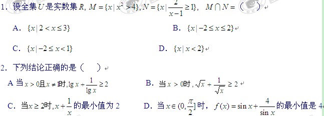 甘肃省陇东中学2012届高三上学期第四次模拟考试数学试题(无答案)