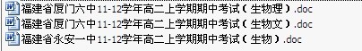 【打包下载】福建省11-12学年高二上学期期中考试(生物)(共3份)