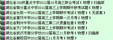 【打包下载】湖北省名校2012届高三上学期月考(物理)8个(截止到12月1)