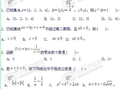 辽宁省铁岭高级中学2012届高三上学期期中考试(数学理)