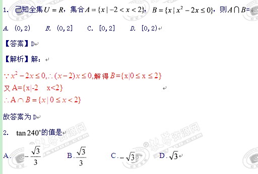 解析卷:山东实验中学2012届高三上学期第一次诊断性考试(数学文)