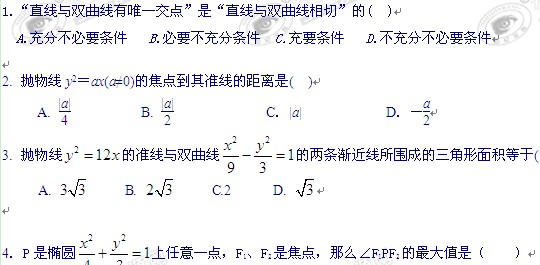 辽宁省沈阳二中11-12学年高二上学期12月月考(数学理)