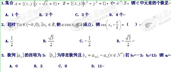 山东省潍坊市三县2012届高三12月联考(数学理)