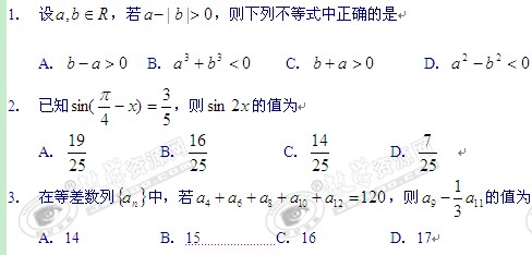 山西大同一中、同媒一中2012届高三上学期第三次考试(数学理)