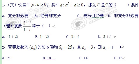 甘肃省嘉峪关市一中2012届高三上学期模拟考试试题(数学)