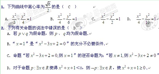 北京市第十八中学11-12学年高二上学期期末模拟考试(数学理)(教师用)