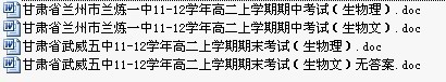 【打包下载】甘肃省11-12学年高二上学期12月考试(生物)(共4份)