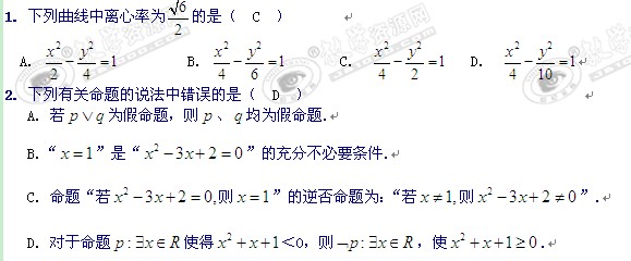 北京市第十八中学11-12学年高二上学期期末模拟考试(数学理)