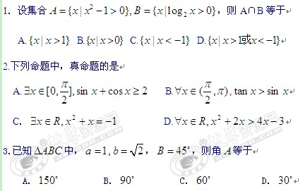 黑龙江省大庆铁人中学2012届高三上学期期末考试试题(数学理)