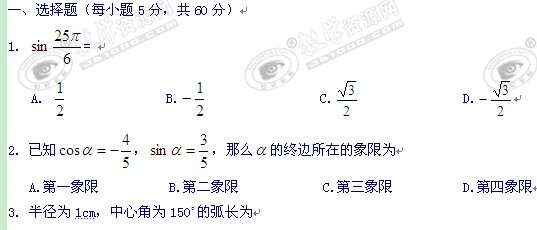 黑龙江省鹤岗一中11-12学年高一上学期期末考试(数学理)