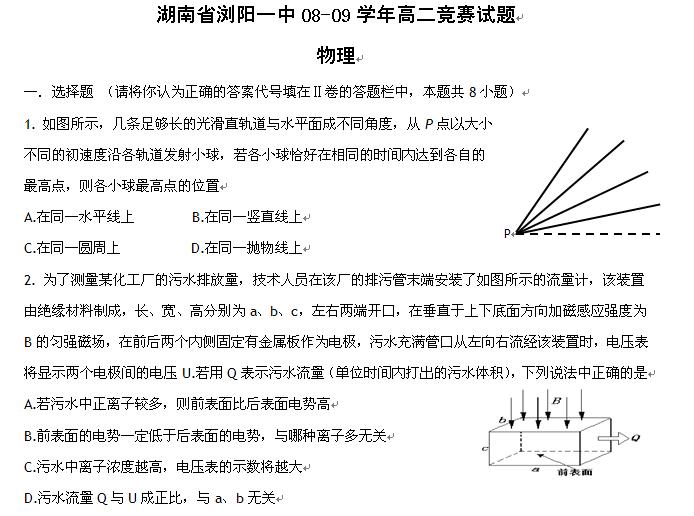 湖南省浏阳一中08-09学年高二竞赛试题(物理)