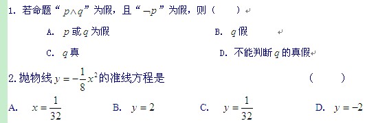 山西省太原五中高二上学期期末检测(数学理)缺答案