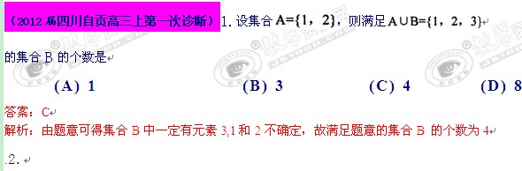 2012届高考数学(文)二轮复习名校试题精选分项解析:第一辑_专题01集合