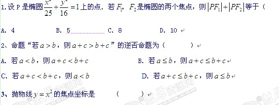 福建省南安市侨光中学11-12学年高二上学期期末考试(数学文)