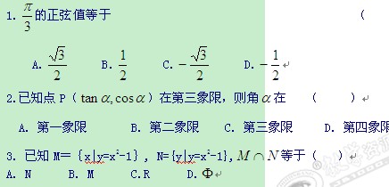 黑龙江省农垦总局牡丹江管理局高中11-12学年高一上学期期末考试(数学)