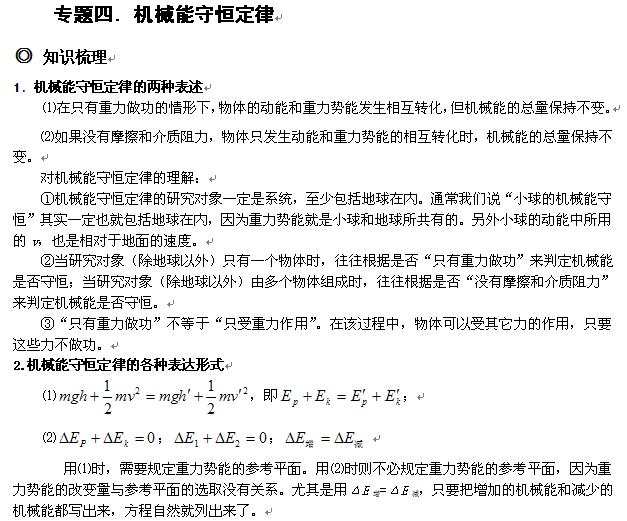 物理:4.4机械能守恒定律(粤教版必修2)