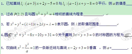 江苏省姜堰市溱潼中学高二小题训练(数学1--4)缺答案