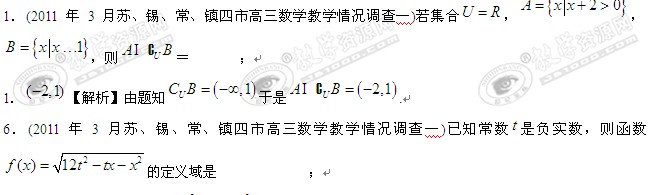 江苏省各地市2011年高考数学最新联考试题分类大汇编(6) 不等式