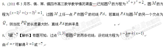 江苏省各地市2011年高考数学最新联考试题分类大汇编9直线与圆