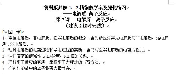 强化训练(七)——电解质 离子反应(鲁科版必修1、2)
