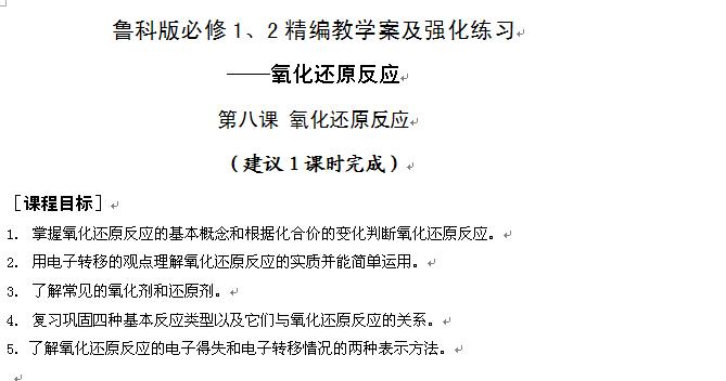 强化训练(八)——氧化还原反应(鲁科版必修1、2)
