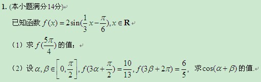 江苏省2012届高三数学二轮专题训练:解答题(1)