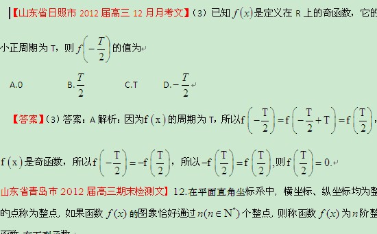山东省各地市2012年高考数学(文科)最新试题分类大汇编3:函数(1)