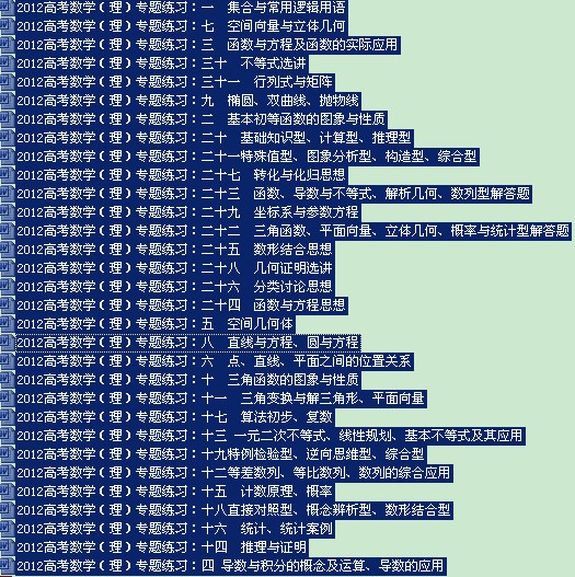 [打包下载]2012高考数学(理)专题练习:一至三十一