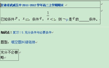 11-12学年高中数学月考、期中等考试试题分类汇编:充分条件与必要条件