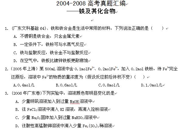 化学:2004-2008年高考真题汇编——铁及其化合物