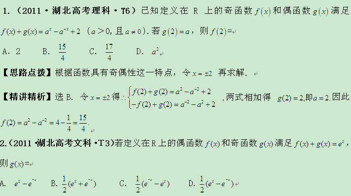 金榜2011高考真题分类汇编:考点4函数的单调性及最值、函数的奇偶性与周期性(大纲版地区)