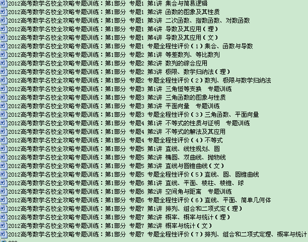 [打包下载]2012高考数学名校全攻略专题训练:第1部分(共28份)