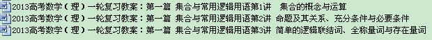 【打包下载】2013高考数学(理)一轮复习教案:第一篇 集合与常用逻辑用语(共3讲)