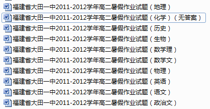 [打包下载]福建省大田一中2011-2012学年高二暑假作业试题(9科10份,答案不全)