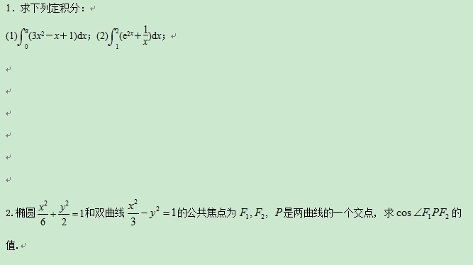福建省大田一中2011-2012学年高二暑假作业数学(理)试题(5)