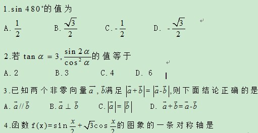 内蒙古巴市一中11-12学年高一下学期期末考试(数学)